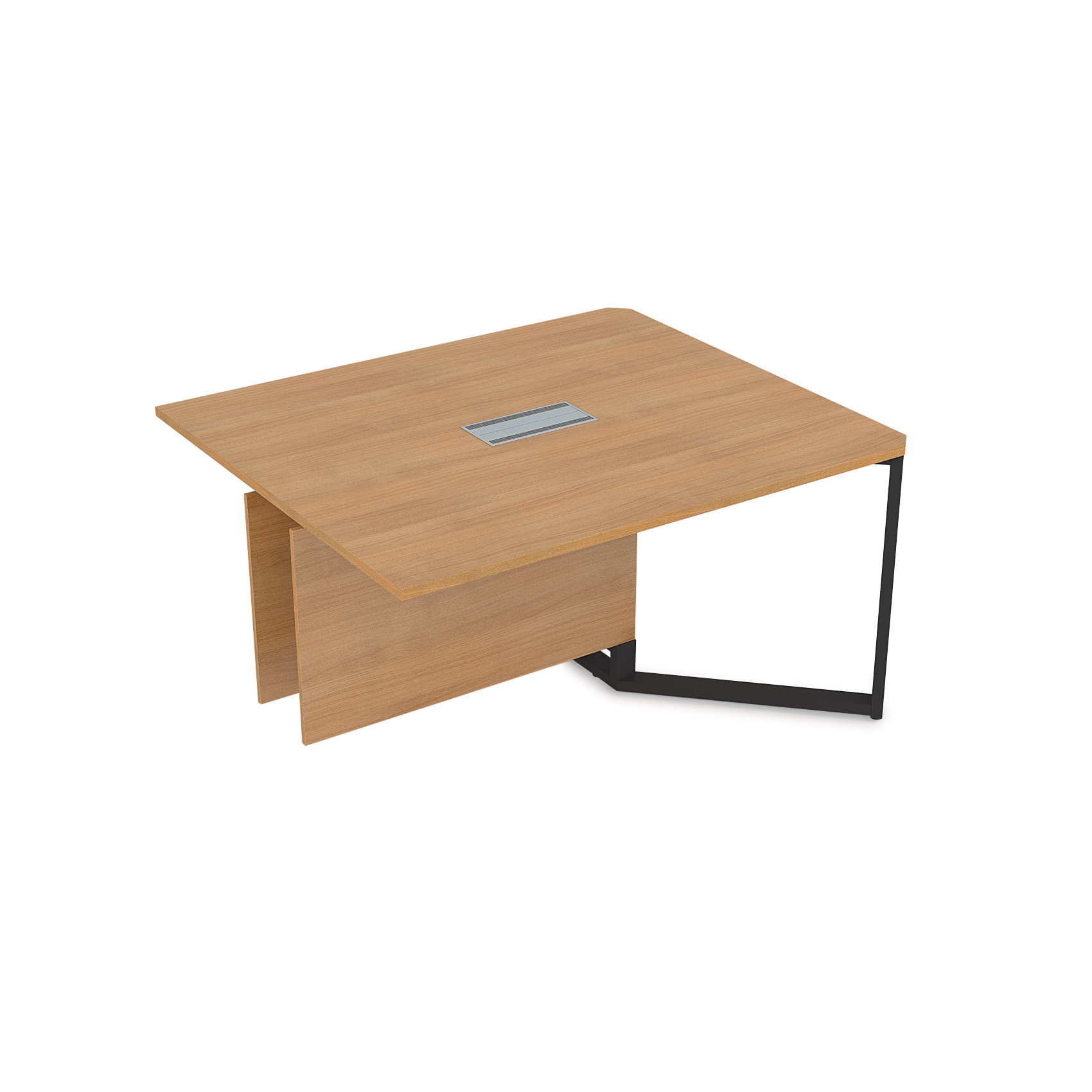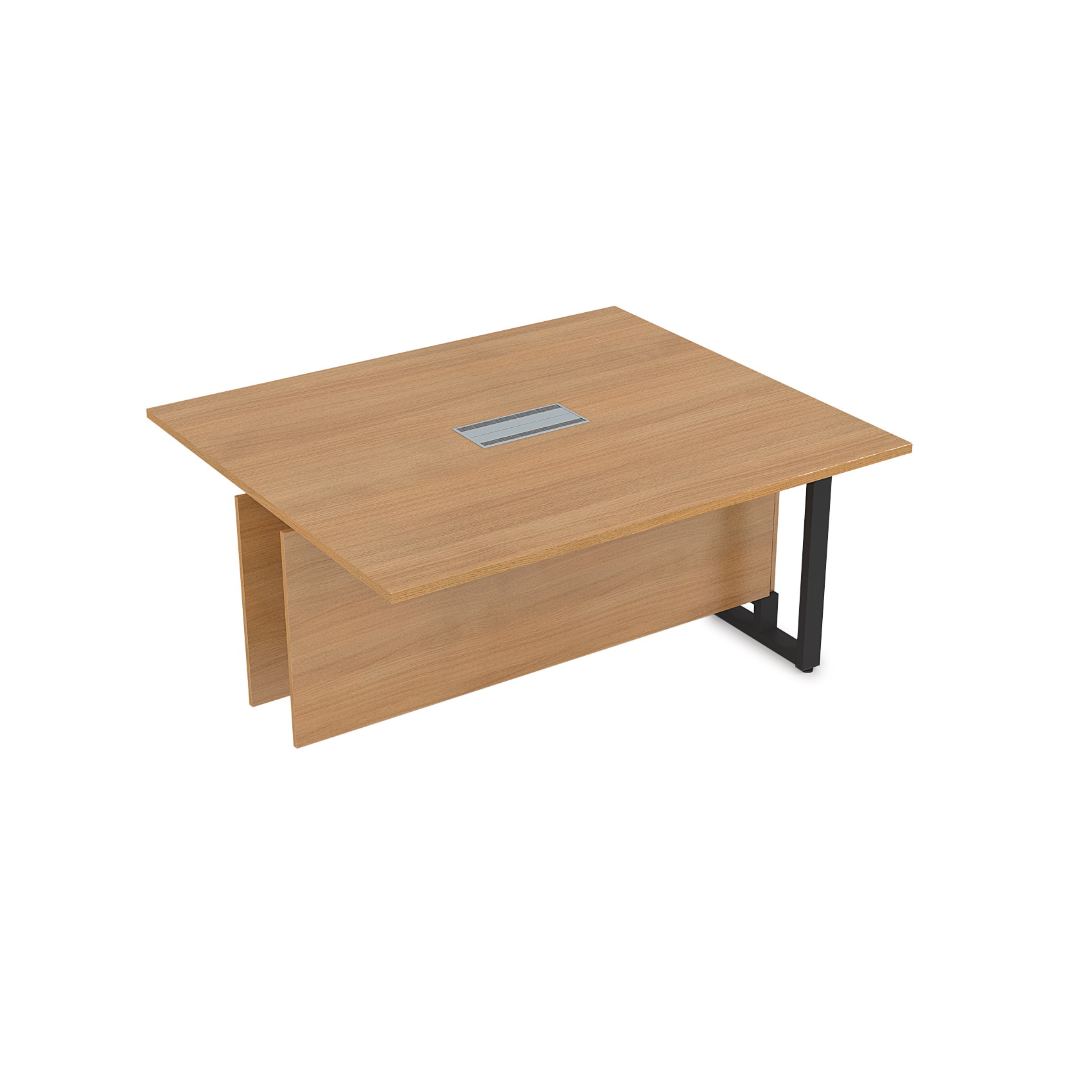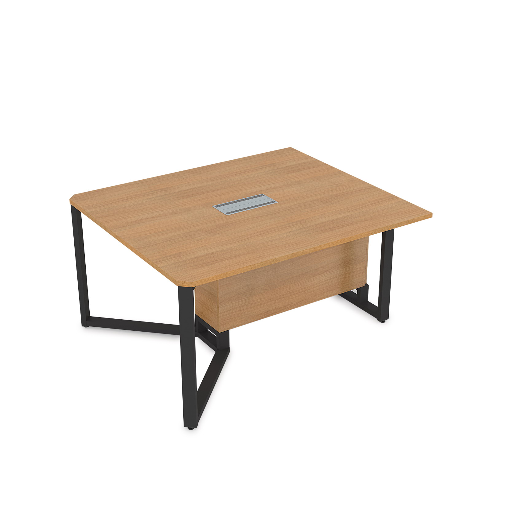Конструкция стола позволяет разместить в его коробе провода и коммуникативное оборудование. Все столешницы комплектуются лючками для оперативного доступа в короб под провода. Съемная панель короба под провода (для быстрого доступа устанавливается на магниты).
